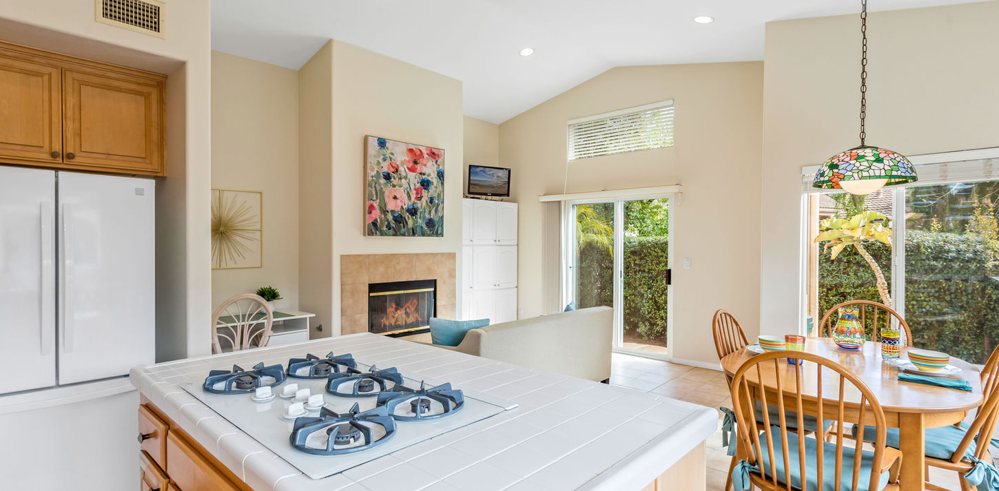 The outdoor living space boasts a large flagstone patio and a private garden, providing a peaceful setting to relax or entertain. Residents of Winchester Commons enjoy resort-style amenities, including a large swimming pool, jacuzzi, clubhouse, two tennis courts, a sport court, and a scenic greenbelt with charming gazebos and walking paths. Ideally located near Sandpiper Golf Course, the Butterfly Preserve, Haskell's Beach, shopping centers, and popular restaurants, this home offers an exceptional lifestyle in a highly sought-after community.